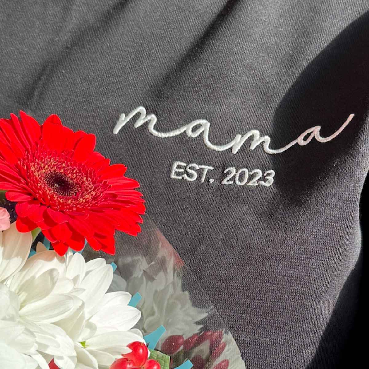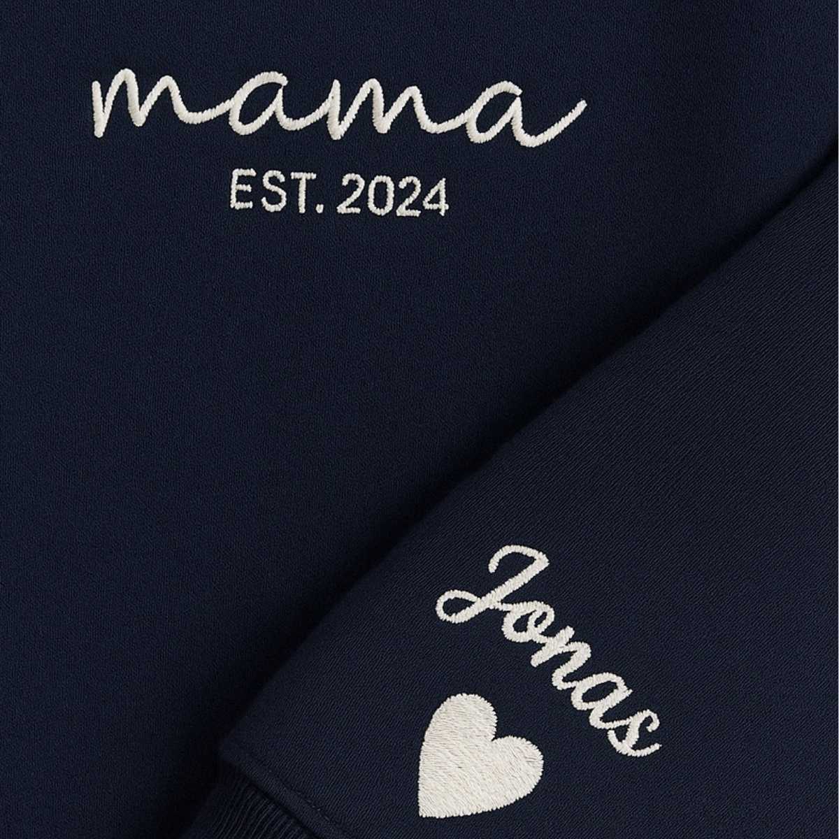 "The MAMA sweatshirt is absolutely beautiful! The embroidery is of the highest quality, and having my kids' names on the sleeve makes it so personal. It's super comfortable and perfect for everyday wear."