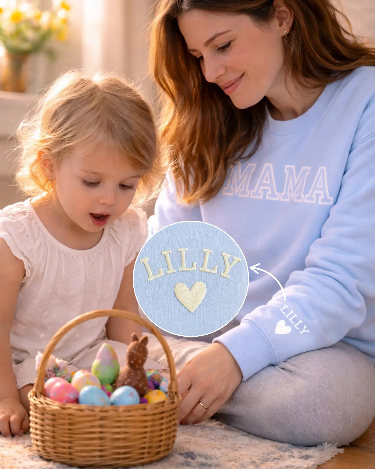 "The MAMA sweatshirt is absolutely beautiful! The embroidery is of the highest quality, and having my kids' names on the sleeve makes it so personal. It's super comfortable and perfect for everyday wear."